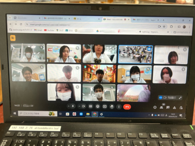 5月30日(木)、総合学科3年生が台湾・高雄市の高雄市立高級工業職業学校とのオンライン国際交流会を行いました。2回目となる今回は、「言語スキルアップと国際交流」の授業を受講する12名が参加。生徒たちは自己紹介のあと、ゲームや互いの学校に関する質問で盛り上がっていました。また、学校生活を紹介するスライドショーも楽しみ、交流を深めました。