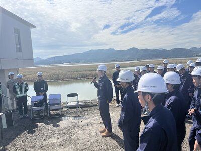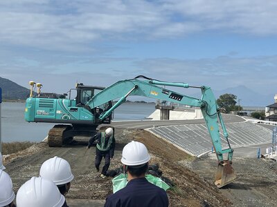 令和7年10月23日木曜日の午前中を使い、矢部開発㈱様が施工されている、緑川川口下流地区(3工区)築堤工事の現場見学会に行ってきました!