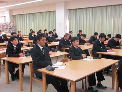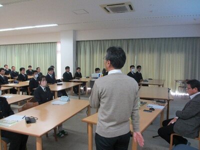 『2025年度CHERSI出前授業』の一環で12月10日(水)に職業人講話を機械科2年生対象に実施しました。熊本市北区植木町にあります平田機工株式会社の松成様と金澤様に来校していただき、国内トップレベルの「ものづくり現場」の講義に生徒たちは真剣な面持ちで受講していました。会社概要から自動車部品、産業用ロボットについての内容に生徒たちはしっかりとメモを取りながら聞き入っていました。最後の質疑・応答には何人も手が挙がり、疑問に思った点などを質問していました。松成様と金澤様には1つ1つの質問に丁寧に対応していただき、大変感謝致しております。来年に迫った進路選択に向けての助言等もいただき、大変有意義な時間を過ごすことができ、生徒たちも気が引き締まったと思います。