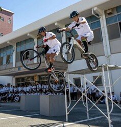 『トライアル』は岩や丸太、斜面等の自然地形や人工の構造物で作られたコース(セクション)を走行し、いかに足を着いたり転倒せずに走行できるかを競う競技です。遥斗は11歳、湊太は9歳から競技を始め、今や日本トップレベルの選手に成長しました。