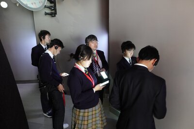 研修2日目はあいにくの雨となりましたが、生徒たちは朝から元気に新竹エリアでの活動を行いました。 午前中は、世界最大の半導体集積地である新竹サイエンスパークを車窓から見学。バス会社のドライバーさんのご好意で、台湾の名門・国立清華大学のキャンパスツアーも実現しました。広大な敷地やTSMC寄贈の施設を目の当たりにし、台湾における産業と教育の密接な繋がりに生徒たちも圧倒された様子でした。