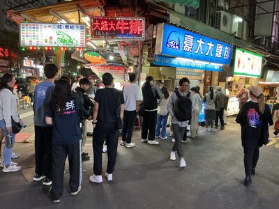 夕食は、台北最大の士林夜市を訪れました。台南の花園夜市と違い、細い路地が入り組んでおり、生徒たちは探検しながら最後の夜市を楽しみました。