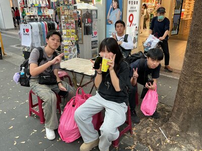 午後は、若者の文化の発信地であり「台北の原宿」とも称される西門町にて自主研修を行いました。戦前からの歴史的な建築物と最新の流行が共存する街並みの中、生徒たちは食べ歩きやお土産探しに挑戦。限られた時間の中で、これまで学んだ英語や台湾華語でやり取りを交わし、集合時間には両手いっぱいに袋を下げて、達成感に満ちた笑顔で戻ってきました。