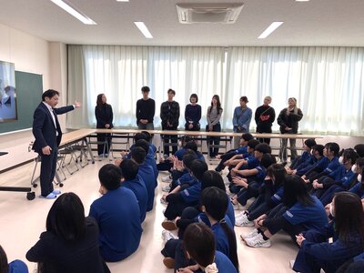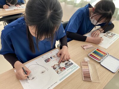 講話の後は、実際にメイクやカットの体験学習を行いました。専門学校の学生さんから直接、技術やコツを丁寧に指導していただいたことで、生徒たちの知的好奇心は大いに刺激され、誰もが目を輝かせて意欲的に取り組んでいました。