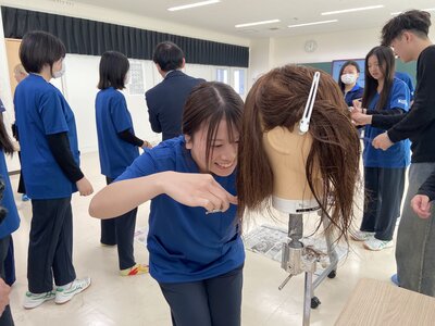3月12日(木)、本校の社会福祉実習室にて、総合学科2年次・社会福祉系列の生徒を対象とした「福祉美容」の講習を実施しました。