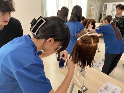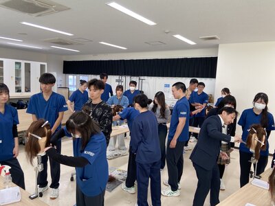 専門的な技術と温かいご指導をいただいた九州美容専門学校の皆様、誠にありがとうございました。今回の貴重な体験を、生徒たちの今後の学びと成長にしっかりと繋げてまいります。
