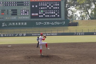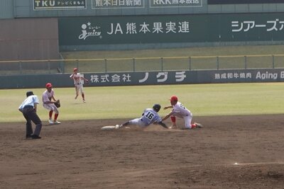 3月28日(土)に行われた第158回九州地区高等学校野球熊本大会3回戦において、本校硬式野球部はシード校・東海大学付属熊本星翔高校と対戦し、5-8で惜敗しました。