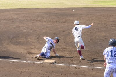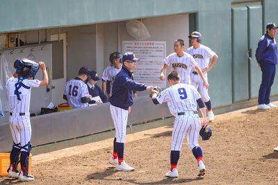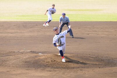 試合は手に汗握る展開でしたが、中盤の好機を逃さず、打線が繋がって先制点を奪取。その後も追加点を挙げて試合を有利に進めました。守備においても先発の山室橙真君(自動車科3年)が気迫のピッチングを披露し、見事な完封勝利を飾りました。
