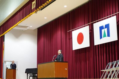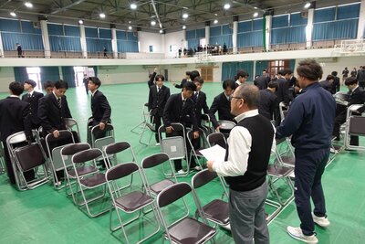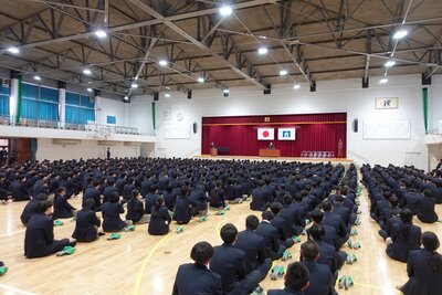 まず最初に行われた着任式では、今年度から加わった先生方を温かい拍手で迎えました。続く始業式では、学校長より挨拶や笑顔など4つの大切な心構えに加え、「ありのままの自分を認め、互いを尊敬し、可能性を諦めず挑戦して、自分たちの学校を自分たちの手で創り出してほしい」と、生徒たちの背中を押す力強いエールが贈られました。式典後は新しい教科書の購入や、明日の入学式に向けた会場設営を行い、新入生を迎える準備を整えました。